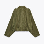 Ta elegancka kurtka pilota z rękawami w kształcie nietoperza łączy komfort i styl w doskonały sposób. Miękki materiał zamszowy oferuje odrobinę luksusu, podczas gdy luźny krój zapewnia swobodny i modny wygląd.