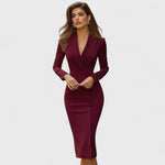 Sukienka, która łączy elegancję i nowoczesność w jednym geście. Model Célia został zaprojektowany, aby podkreślić kobiecą sylwetkę dzięki dopasowanemu krojowi midi, który harmonijnie i z wyrafinowaniem podąża za liniami ciała. Jej design z dekoltem w serek i długimi rękawami sprawia, że jest idealna zarówno na dni pracy, jak i na wieczorne wydarzenia.