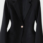 Ponadczasowa kurtka o eleganckim kroju, która podkreśla kobiecość i styl. Pojedynczy guzik z przodu dodaje wyrafinowania, podczas gdy kieszenie o prostych liniach wzmacniają minimalistyczny charakter odzieży. Idealna zarówno do profesjonalnych stylizacji, jak i na eleganckie wieczorne wyjścia.