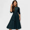 Dodaj elegancji swojej garderobie dzięki tej wspaniałej sukience midi. Projekt łączy sylwetkę, która podkreśla figurę, z nowoczesnym akcentem. Pasek w talii podkreśla kształty i zapewnia idealne dopasowanie. Z rękawami o średniej długości i zwiewną spódnicą, ta sukienka jest idealna na okazje świąteczne, eleganckie przyjęcia lub nawet na co dzień, gdy chcesz dodać odrobinę wyrafinowania.