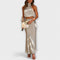 Ta niezwykła sukienka sięgająca kostek jest idealnym wyborem na eleganckie wyjścia i ceremonie. Wysoki kołnierz oraz dopasowany krój podkreślają sylwetkę, a boczny zamek ułatwia zakładanie i dodaje funkcjonalności. Wykonana z wytrzymałego poliestru, łatwa w pielęgnacji i przyjemna w noszeniu.