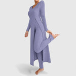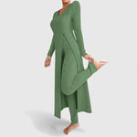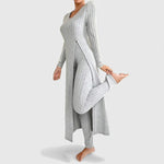 Zestaw prążkowy Susan to idealne połączenie wygody i stylu. Wykonany z miękkiej dzianiny, otula ciało lekkością i zapewnia swobodę ruchów, zachowując jednocześnie elegancki wygląd nawet w chwilach relaksu. Nowoczesny design z długim krojem i dopasowanymi spodniami podkreśla sylwetkę, co czyni go idealnym zarówno do domu, jak i na casualowe wyjścia.