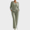 Oferując nowoczesny wzór w paski, zestaw zawiera bluzkę z długim rękawem i dekoltem w kształcie litery V oraz szerokie spodnie – idealne połączenie komfortu i elegancji na relaks lub codzienne wyjścia.
